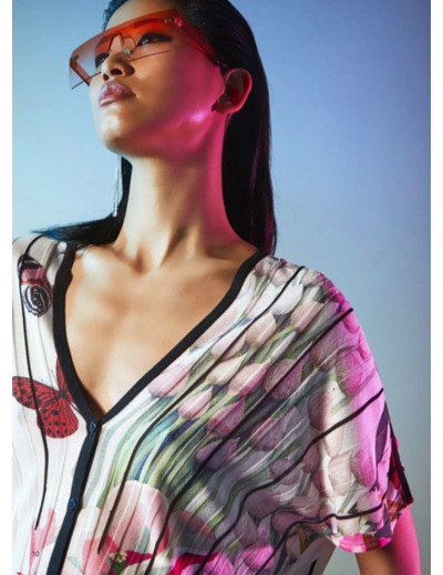 Gilet boutonné, col V à manches courtes.