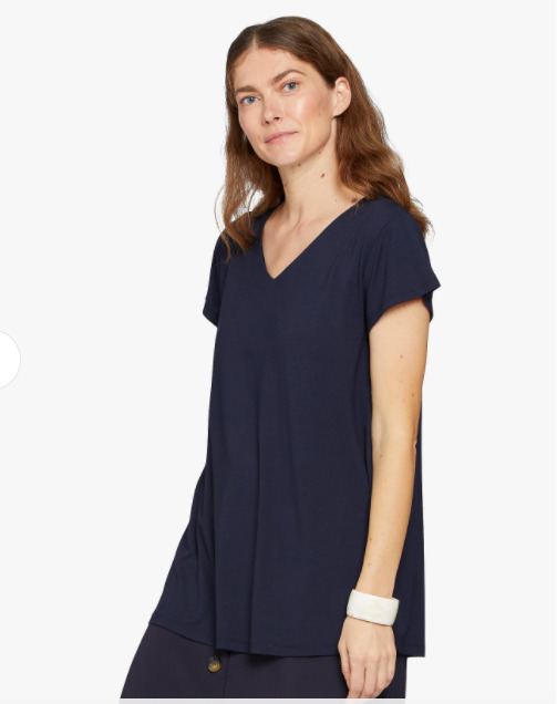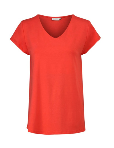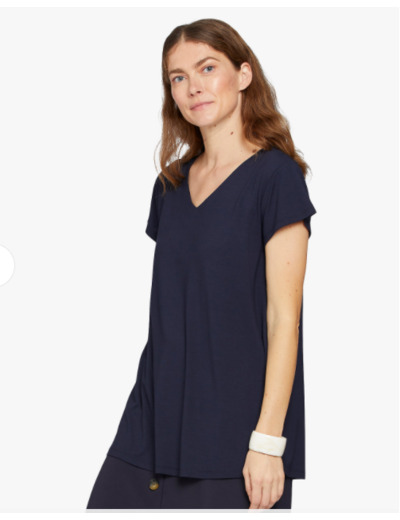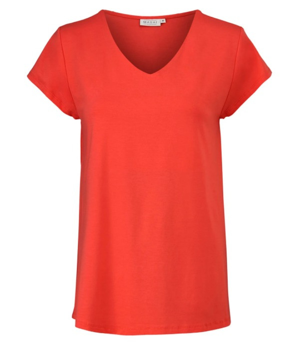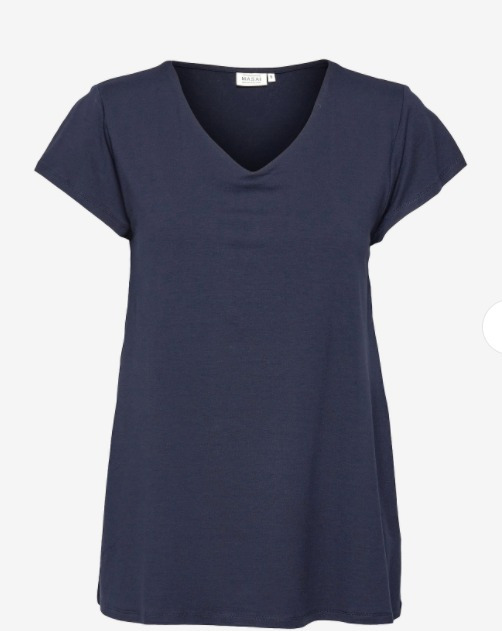 Top Masai qui détient un col en V féminin et qui est coupé dans un tissu en jersey.