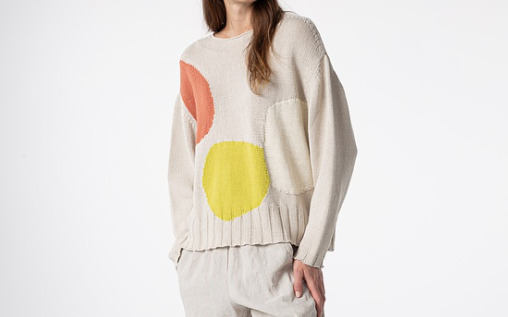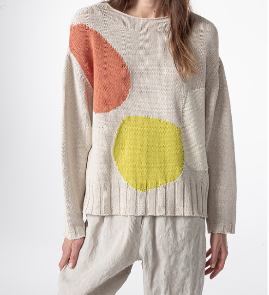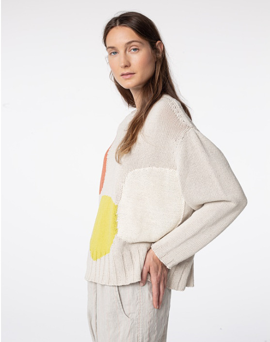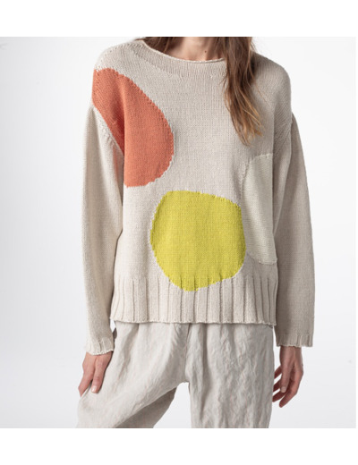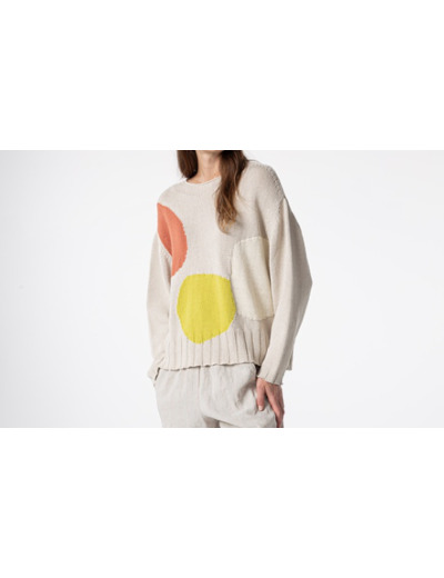 Le pull Soa est confectionné dans un mélange de coton et de lin pour un effet exceptionnel. Les blocs de couleurs tissés directement dans la maille lui donne un côté original tout en mettant en avant la beauté de la matière.