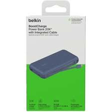 Batterie externe Belkin 20 0000 mAh avec câble intégré, puissance de 30 Watt. Compacte et performante, elle permet une recharge rapide et pratique de vos appareils, idéale pour vos déplacements.