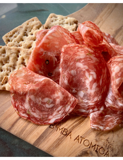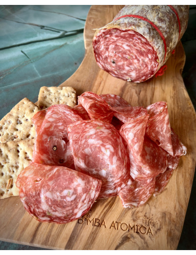 La Finocchiona IGP est une charcuterie italienne emblématique de la Toscane, reconnue pour sa saveur unique et son parfum distinctif de fenouil. Ce salami au fenouil offre une texture douce et un goût authentique, on l’adore.