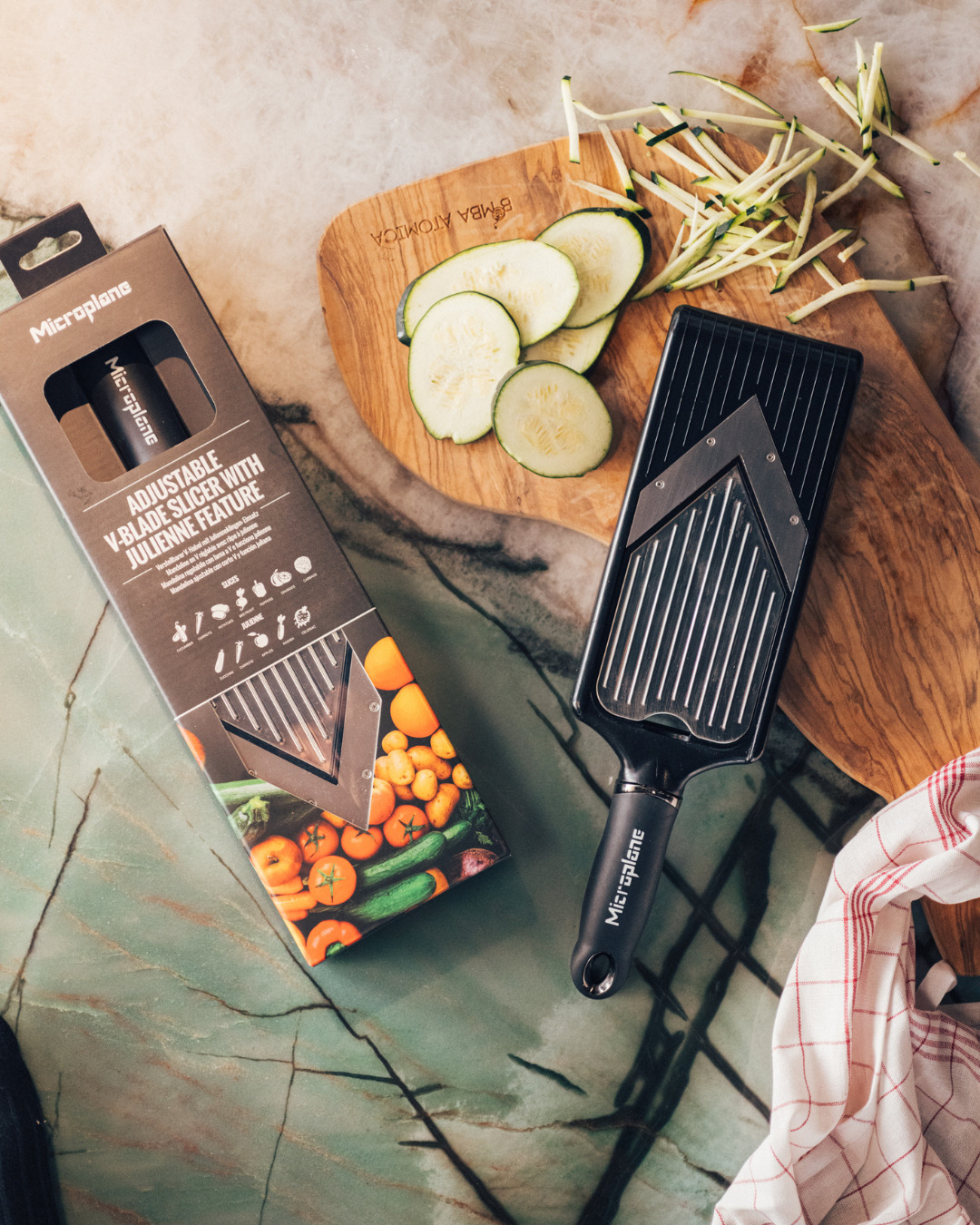 Vous en avez marre de tailler vos légumes au couteau ? La Mandoline Microplane est la solution idéale pour des coupes rapides, régulières et professionnelles ! Grâce à sa lame en V ultra-tranchante et ses couteaux à julienne intégrés, vous pourrez découper facilement légumes, fruits et fromages en fines lanières ou tranches parfaites. Avec son réglage d'épaisseur ajustable, sa base antidérapante pour une stabilité optimale et sa poignée ergonomique, cette mandoline allie pour vous praticité et sécurité.