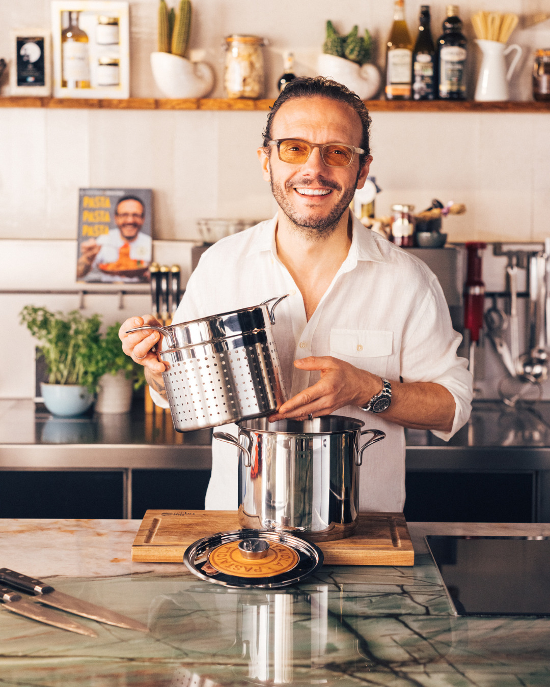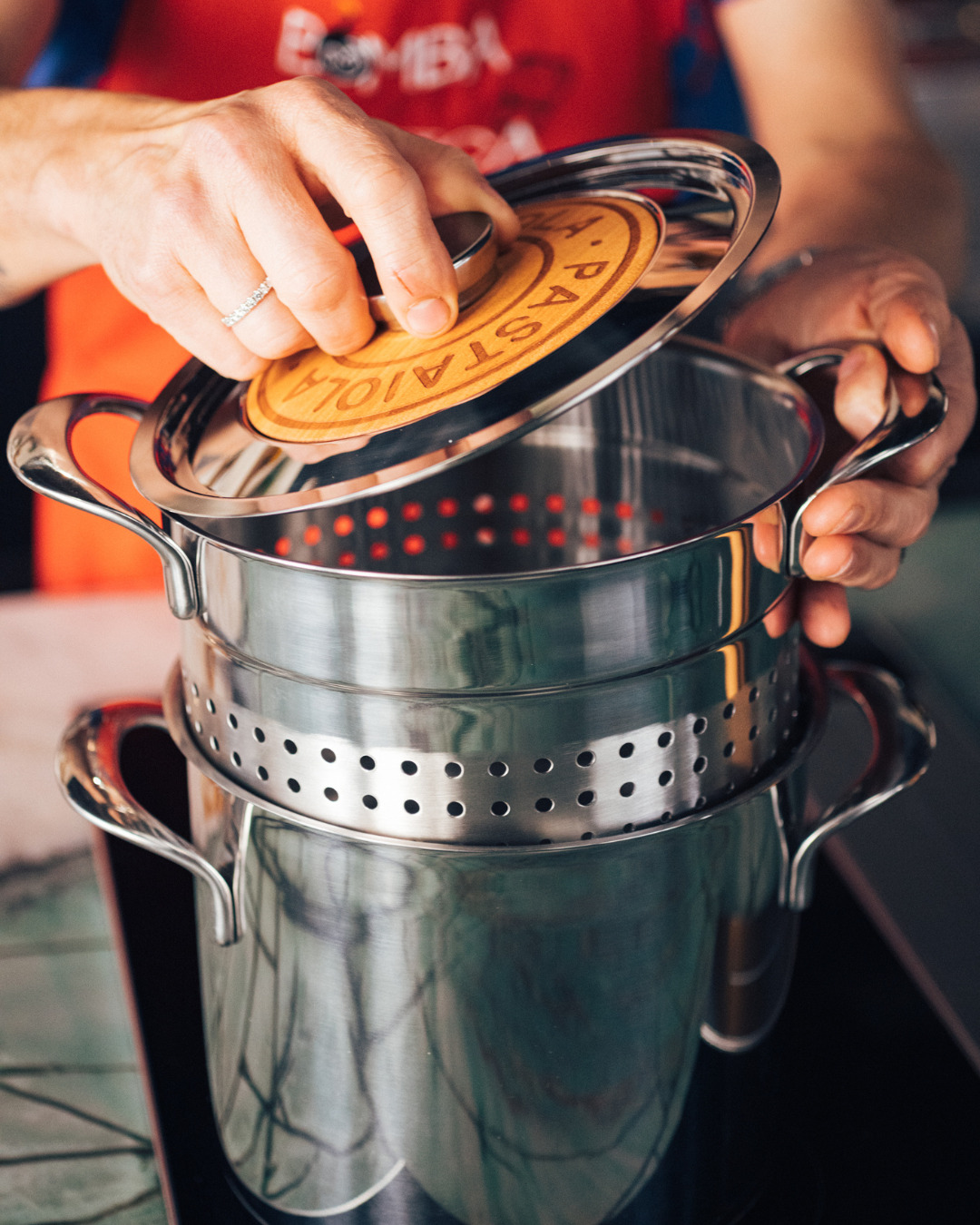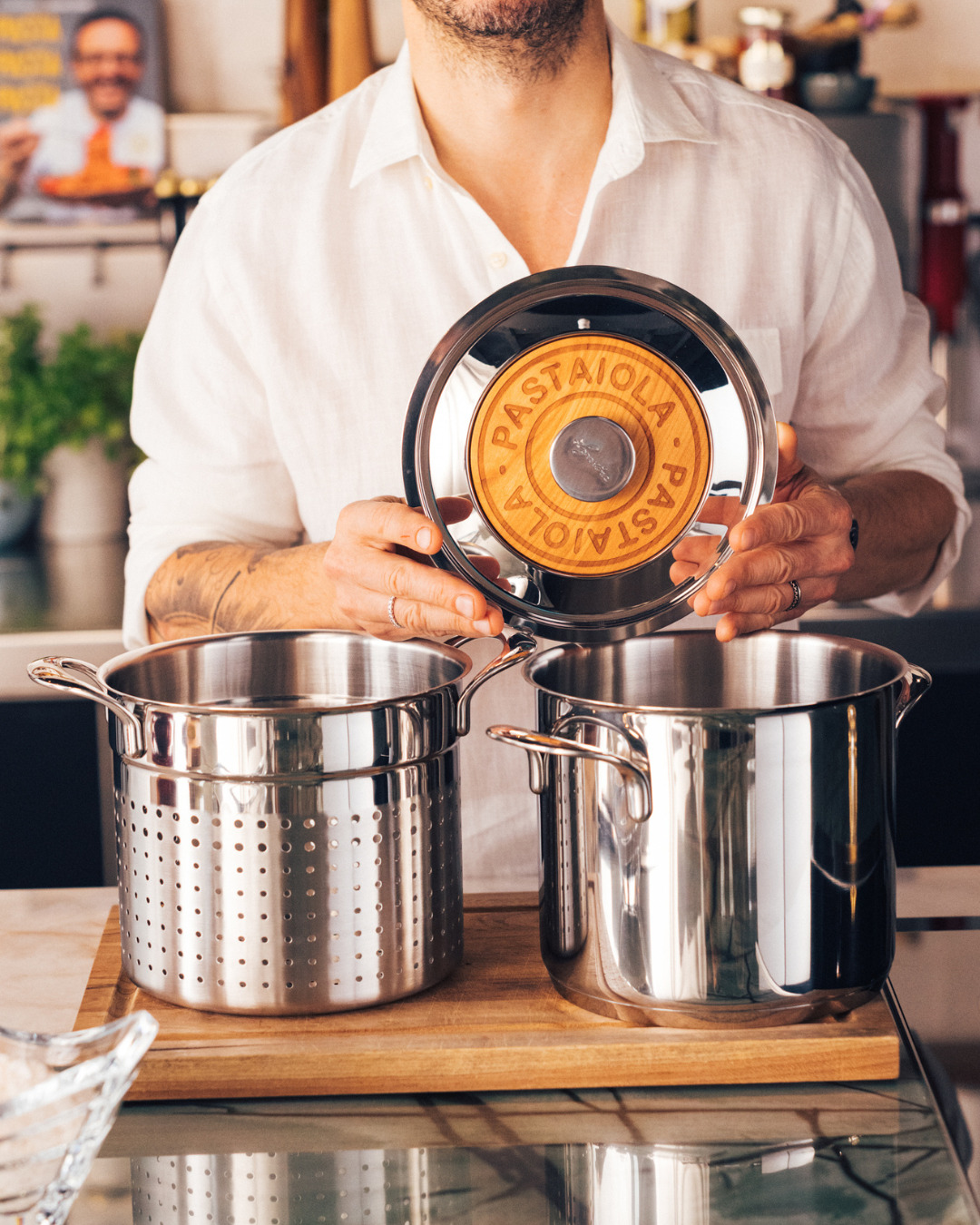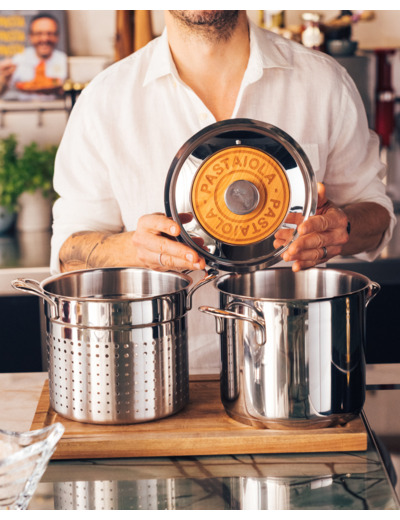 La Pastaiola Lagostina, développée en collaboration avec le Chef Simone Zanoni, allie élégance et performance pour une cuisson parfaite des pâtes. Conçue pour offrir une cuisson homogène, un égouttage sans effort et un service raffiné à table, cette casserole haut de gamme de la gamme Emozione s’adapte à toutes les occasions culinaires.