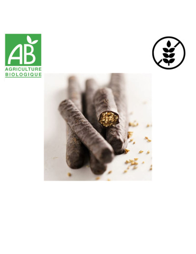 Ingrédients : 42% graines de sésame*, 35% chocolate (pâte de cacao*, sirop de maïs, beurre de cacao*, poudre de vanille*), 6% miel*, sirop de maïs, sucre de canne non raffiné*. (*)issus de l’agriculture biologique.