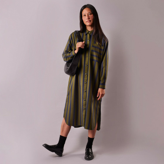 LA Robe Chemise, celle qu'on aime porter pour se sentir conquérante et embrasser avec assurance les journées et soirées de la plus haute importance. Des détails repensés pour un style décontracté et sophistiqué au service d'une féminité décomplexée.