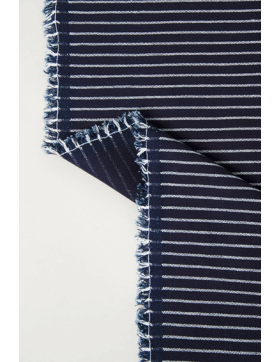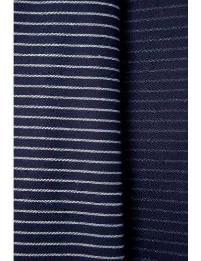 Ses rayures horizontales, subtiles mais présentes, allongent la silhouette et apportent une touche de rythme à vos créations. Un tissu qui trouve naturellement sa place dans un vestiaire cousu main : pantalons, jupes et vestes.