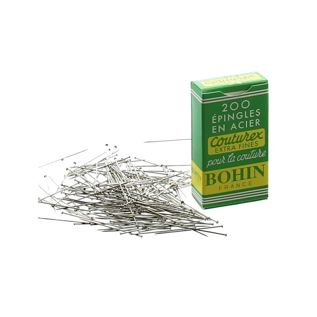Boite de 200 épingles extra-fines tout acier "Couturex" de la marque BOHIN France.