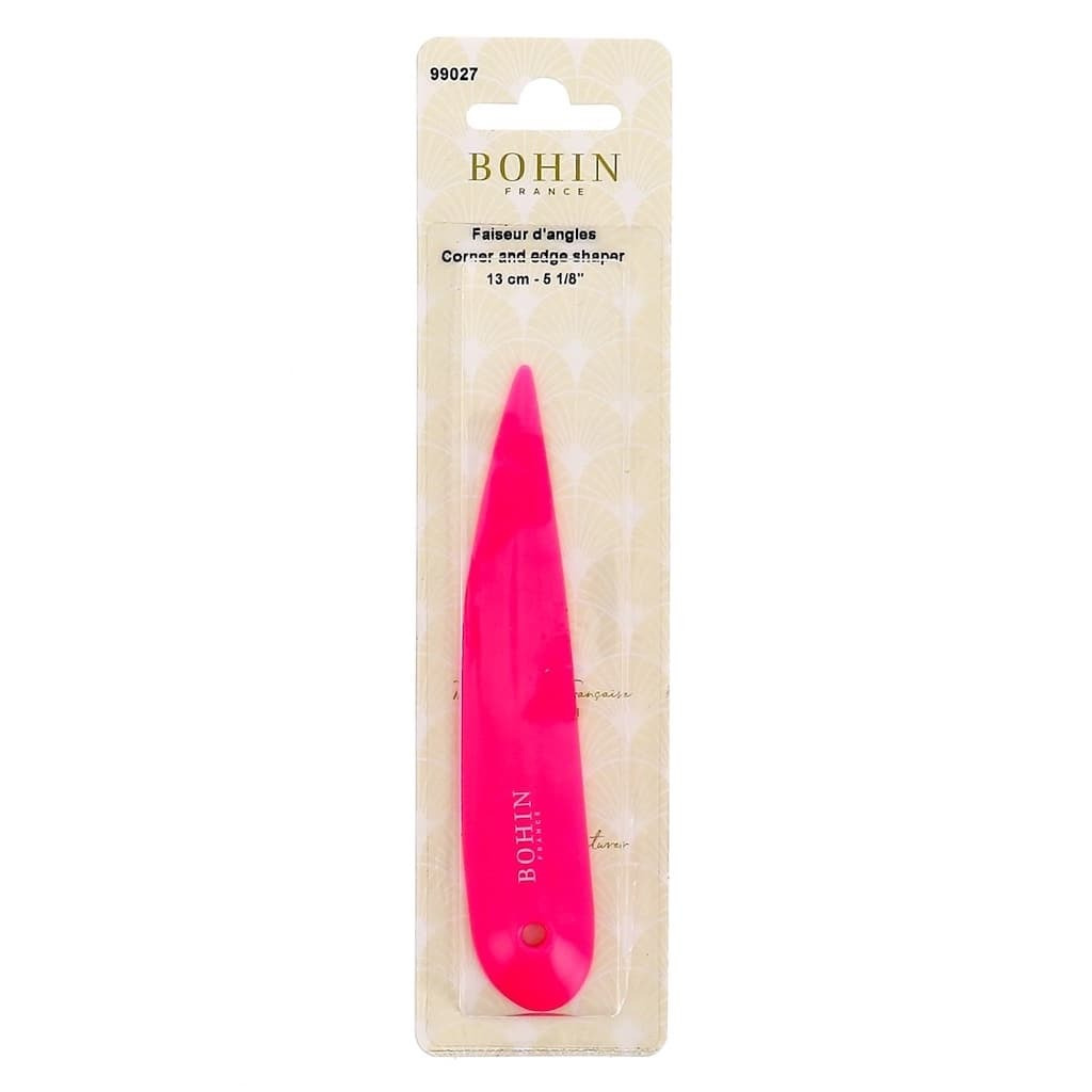 Grâce à sa forme courbe et sa pointe, cet outil permet de donner forme aux angles cousus et retournés en poussant les marges de couture pour qu'elles prennent leur place parfaitement. La partie courbe est idéale pour repousser des éléments plus grands, facilitant ainsi la mise en forme des pièces les plus complexes.