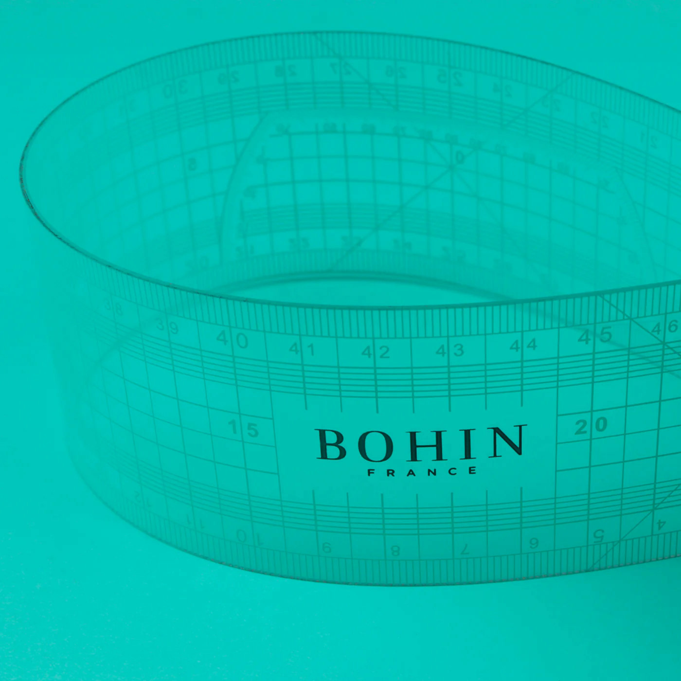 Grâce à son marquage turquoise, la lecture reste claire aussi bien sur tissus clairs que foncés, et sa transparence facilite le report des formes et la vérification des angles droits.
