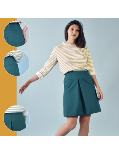 Kit couture jupe Ambrosia. Le kit contient tout ce qu'il faut pour coudre la jupe Ambrosia du livre "Christine Charles – Passez votre CAP couture avec Artesane.com":