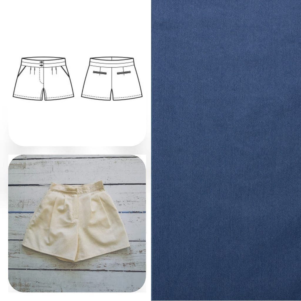 Le kit comporte les fournitures pour realiser le short Jillian du livre "Christine Charles – Passez votre CAP couture avec Artesane.com":