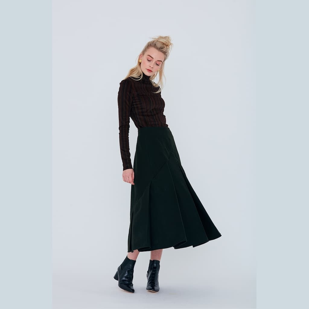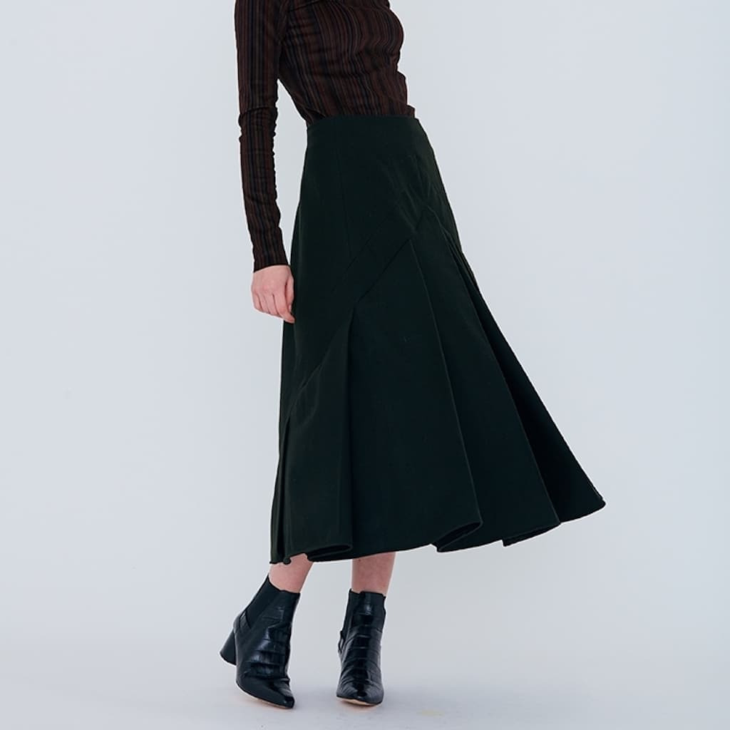 Lorsque l’on veut réaliser ce genre de jupe, il est préférable de choisir des matières premières ayant un maximum de polyester (50% minimum reste l’idéal), de façon à garder les plis parfaitement cassés au fer.
