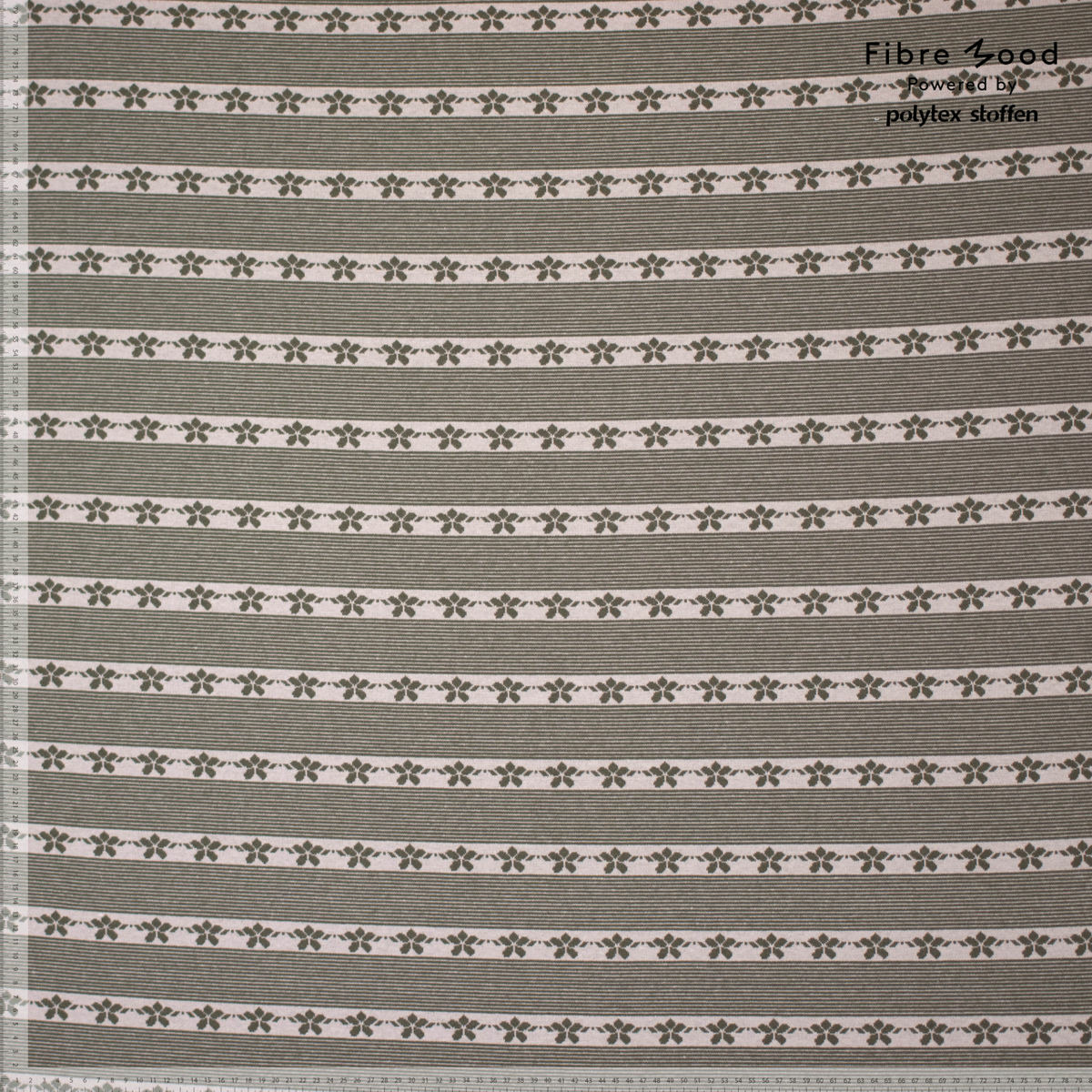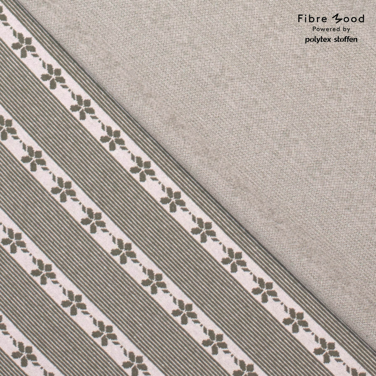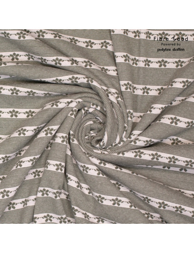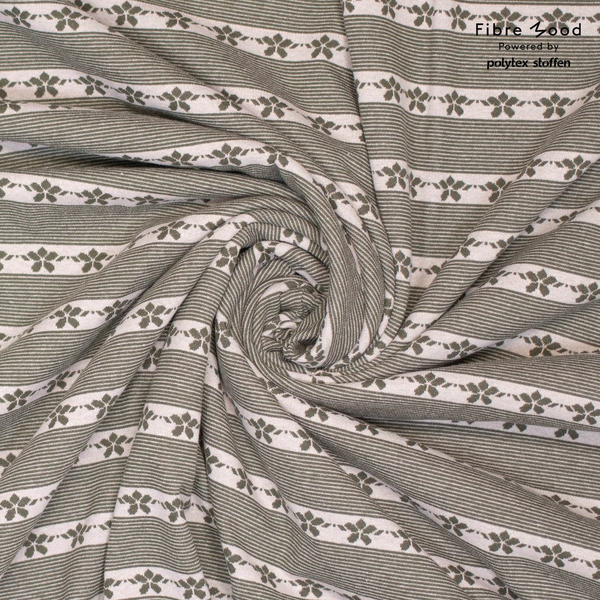 Fibre Mood - Tissu Jacquard de Coton Bio "Thea" Rayures Floral Vert Kaki