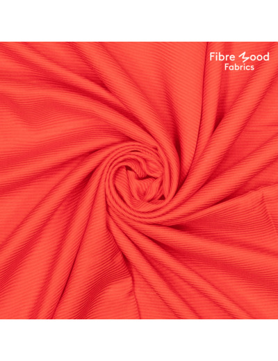 Fibre Mood - Tissu Jacquard de Viscose Satiné "Elvira" Couleur Rouge Aux Fines Rayures