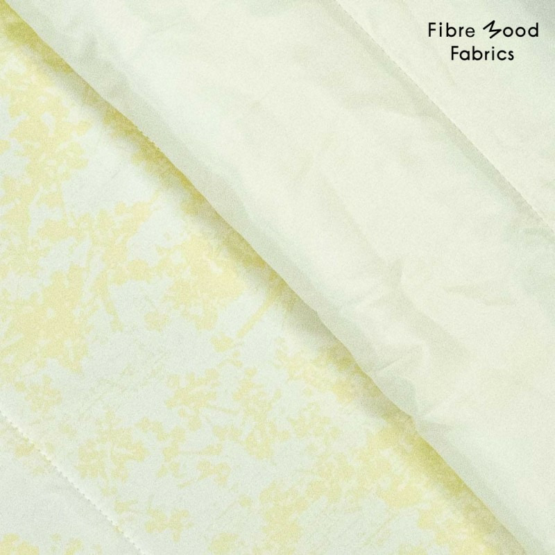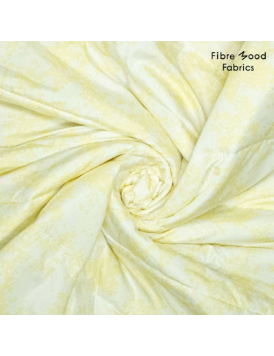 Tissu matelassé double face à motif taches jaune pale sur le fond blanc cassé. Le matelassage est fait en ligne droite horizontale. Le tissu est déperlant, il convient parfaitement pour coudre les blousons, vestes, manteaux mi-saison, capes.