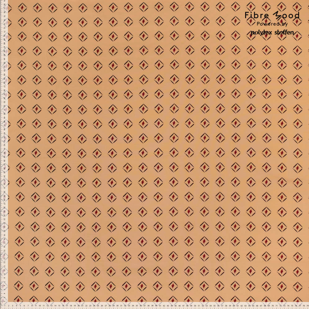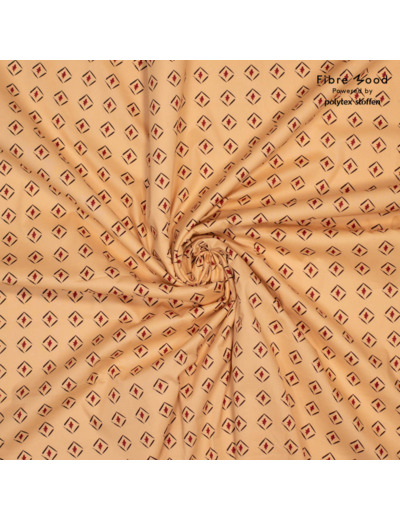 Fibre Mood - Tissu Popeline de Coton "Hariette" Imprimé Losange Noir et Bordeaux sur un Fond Beige