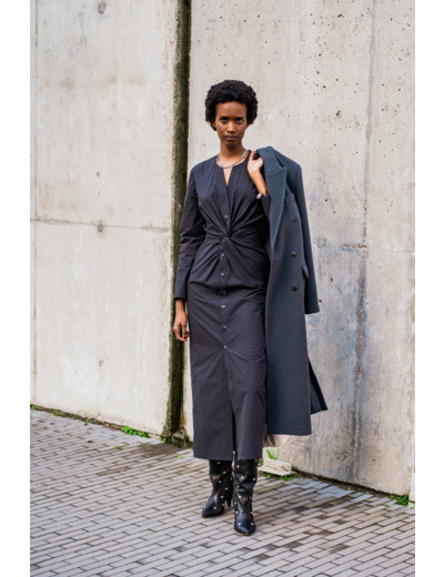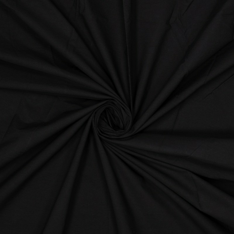 Tissu popeline 100% coton lavé assez compact uni couleur noir.