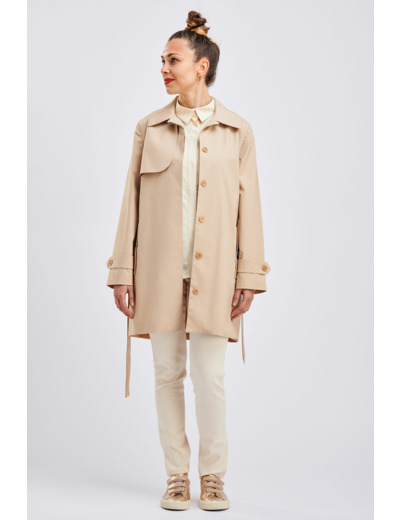 "I am Bob" est un trench avec une coupe droite et ajustée. Il a un bavolet fini avec une demie-boucle en métal au dos. Il a une patte de boutonnage cachée. On peut le choisir avec deux cols : un col droit montant, ou un col chemisier. Il a des manches montées avec, au bas, une patte de resserrage et deux boutons. Il est agrémenté d'une poche passepoilée avec un faux rabat boutonné. On peut le cintrer grâce à une ceinture amovible qui se finit en pointe à laquelle on a l’option d’ajouter une boucle et des œillets. Il suis entièrement doublé et il a une fente dans le dos. Il se décline en 4 longueurs : court (sous-fesse), mi-cuisse, genou et midi.