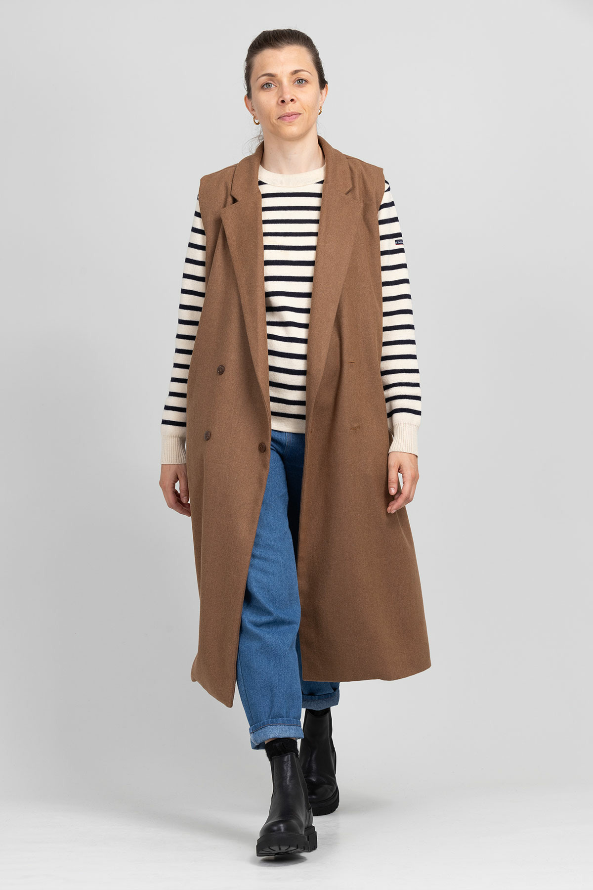 "I am Rose", une veste tailleur. Avec sa coupe légèrement oversize, elle incarne un style garçonne qui reste toujours tendance. Elle est à la fois confortable et élégante, une pièce incontournable pour une garde-robe moderne. Elle a un col tailleur, un double boutonnage, une poche passepoilée droite, et elle est entièrement doublée. Elle se décline aussi en manteau long jusqu’à la cheville, avec une poche passepoilée oblique. Toutes les versions de "I am Rose" se déclinent aussi en versions sans manches.