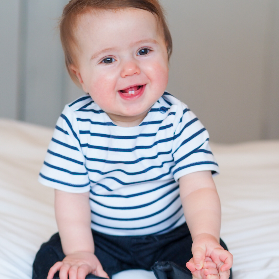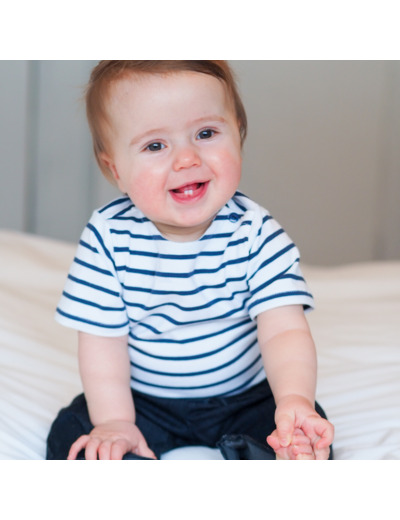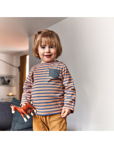 Pochette patron de couture en version papier bilingue. Un classique revisité : la marinière à poche et coudières.