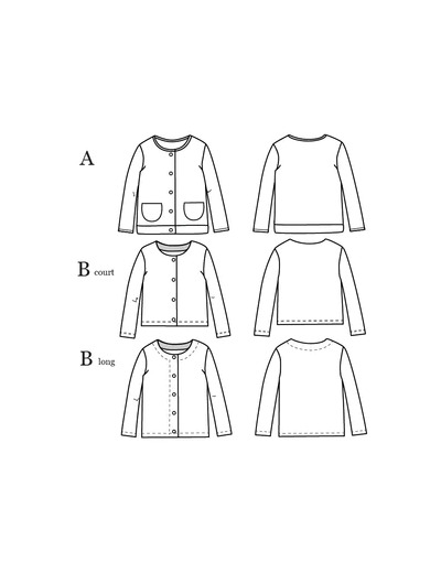 Boutonnage devant. Poches rondes appliquées en option.