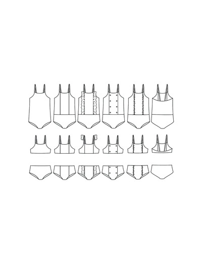 Culotte taille haute – échancrure dos aux omoplates, bretelles rapprochées dans le dos – entièrement doublé pour plus de confort – volants aux épaules optionnels.