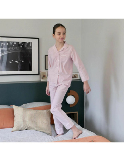 Budapest kids est un patron de pyjama pour enfant, composé d’un haut à col tailleur, et d’un bas droit à taille élastiquée avec des poches côté. Le haut se décline en version manches longues avec revers aux poignets ou en version manches courtes. Le bas propose une option pantalon avec les revers aux chevilles et une option short. L’ensemble peut être entièrement agrémenté d'une finition passepoil.