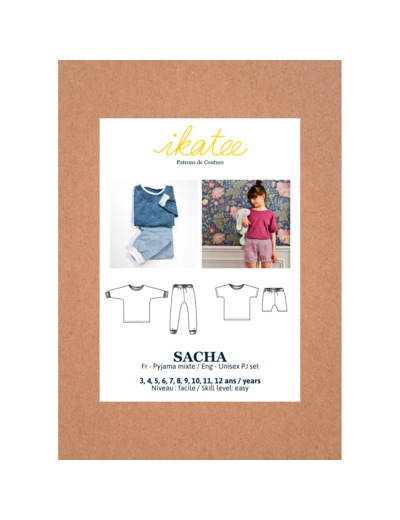 Pochette patron de couture pyjama pour enfant Sacha de 3 à 12 ans.