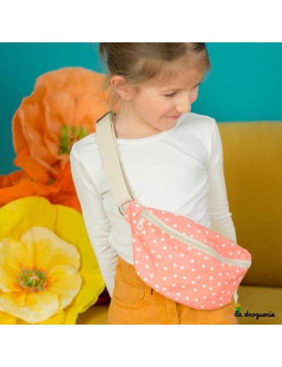 Sac banane doublé avec sangle réglable. Sur le patron, trois versions sont proposées: une taille enfant, une taille M (médium) et une taille XL. Les versions enfant et femme en taille M sont thermocollées pour un meilleur maintient des tissus. Si votre tissu est bien épais ou rigide, pas besoin de thermocoller.
