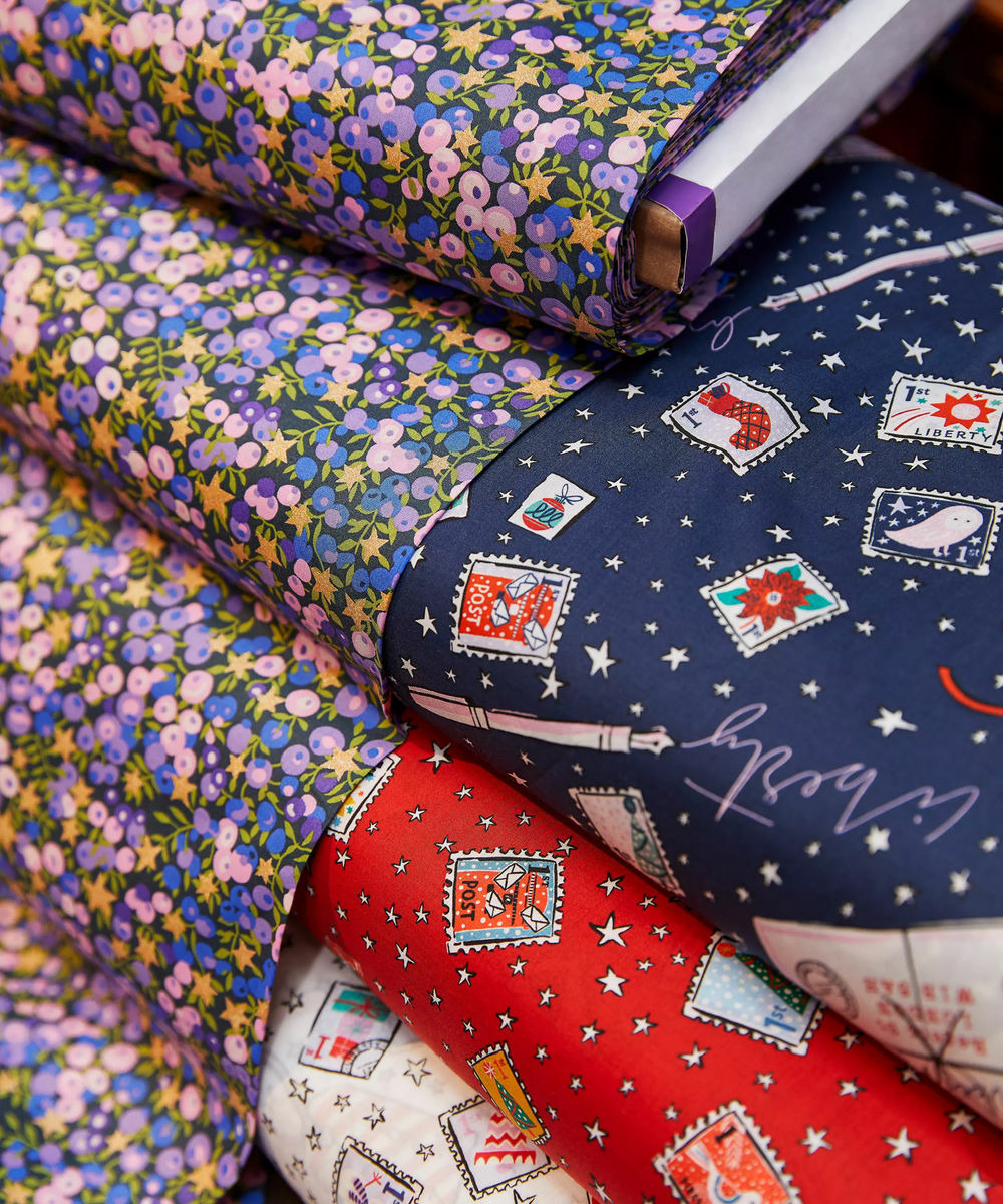 Très joli tissu Liberty tana lawn, motif Wiltshire revisité avec une touche d'or pour les fêtes de fin d'année.