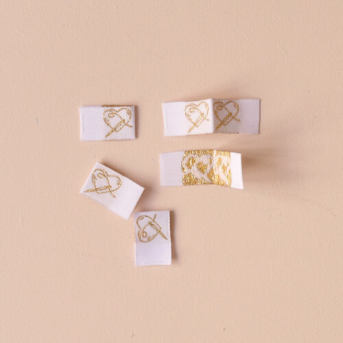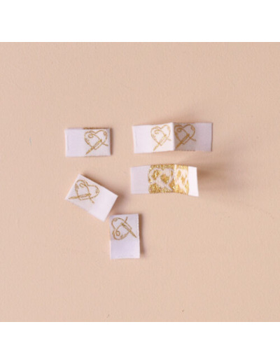 Lot de 5 étiquettes à coudre, avec un coeur doré