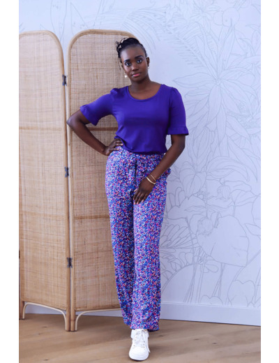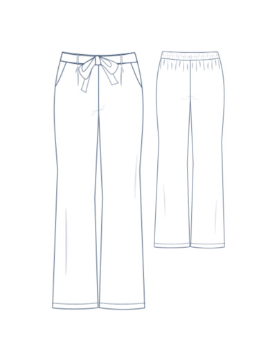 Giverny est un pantalon taille haute fluide et élégant à porter pendant les beaux jours. Sa coupe est légèrement ajustée au niveau des cuisses et évasée sur le bas. La taille est mise en valeur avec une ceinture à nouer qui se glisse dans des passants. Seul le dos est élastiqué et les plis sur le devant donnent l’aisance nécessaire pour un pantalon confortable.