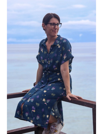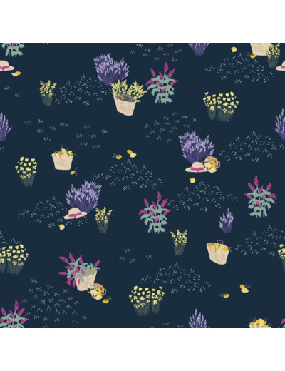Très joli tissu viscose imprimé de motif "Paniers" sur le fond bleu marine. Doux et fluide, ce tissu sera parfait pour réaliser de jolies robes, blouses, jupes ou chemisiers.