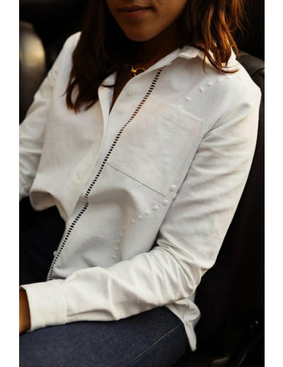 Le patron pochette de La chemise Clémentine de Maéli Paris propose une chemise élégante à la coupe droite, agrémentée de manches longues sophistiquées et d’un col classique, parfait pour un style à la fois chic et facile à porter au quotidien.