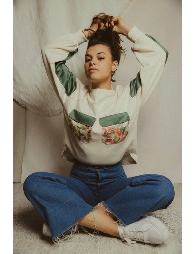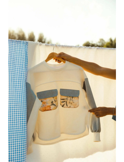Découvrez le patron Sweat Simone de Maéli Paris, un modèle qui allie confort et féminité, grâce à une coupe légèrement loose et des empiècements personnalisables. Pensé pour l’upcycling, il vous permet de mixer matières et chutes de tissus afin de créer une pièce unique.