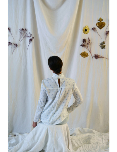DAHLIA est une blouse à col froncé qui se donne des airs de chemises, avec ses manches longues et son joli pli rond qui vient agrémenter le dos du modèle. Sa ligne est légèrement appuyée sans être moulante avec ses pinces poitrines. Le mix parfait entre la blouse et le chemisier, une allure classique à venir bousculer.