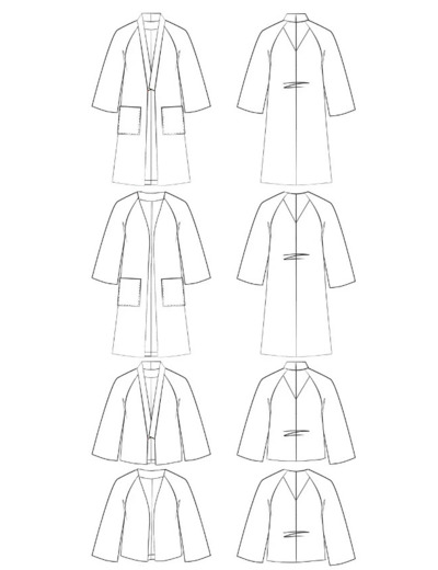 - Tissu conseillé: selon le rendu souhaité, très souple ou plus structuré, vous pouvez aussi bien coudre votre veste en viscose, et satin de coton, en crêpe qu'en jacquard de poids léger à moyen, lainage fin, gabardine fine.