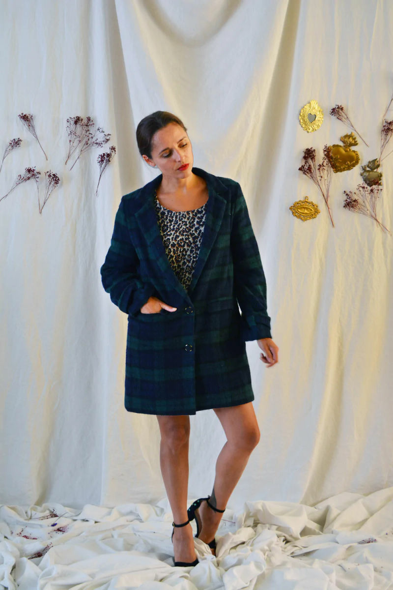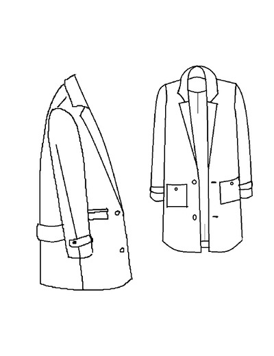 Les jolis détails : boutonnage rabaissé pour plus de modernité, une martingale dans le dos, le choix entre des poches plaquées ou passepoilées à rabat, une coupe ajustée mais pas étriquée, et un travail de pli sur la manche, retenu par une bride boutonnée.