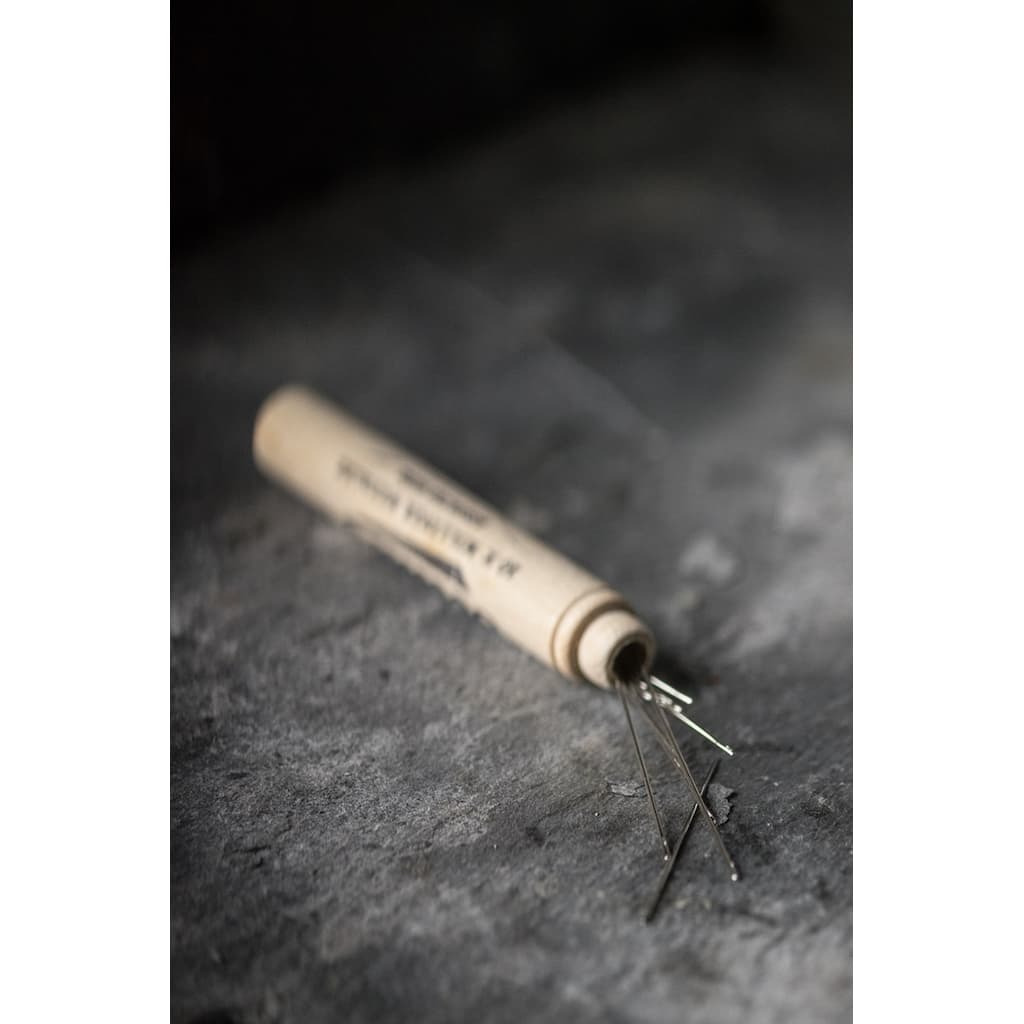 Un mélange de 10 tailles légèrement différentes regroupées dans un petit flacon en bois tourné. Facile à ranger et à emporter partout en toute circonstance.