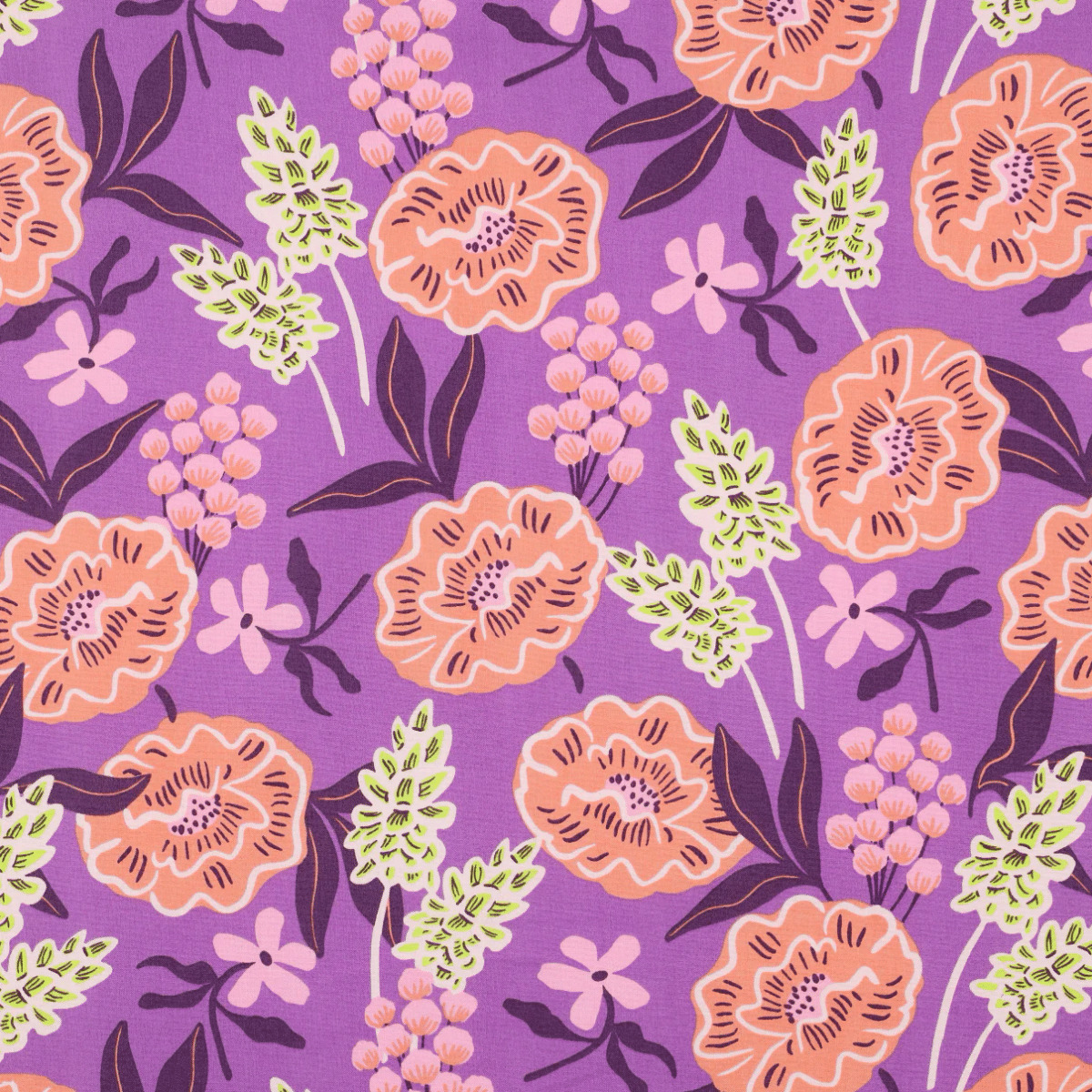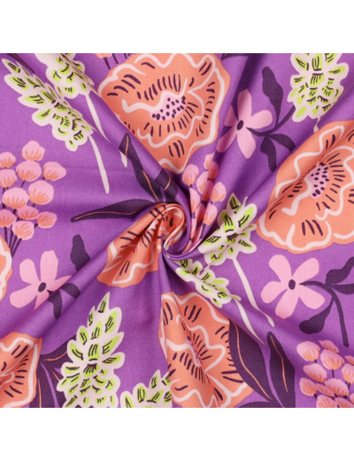 Nerida Hansen - Popeline de Coton "FRESH FLOWERS" Violet