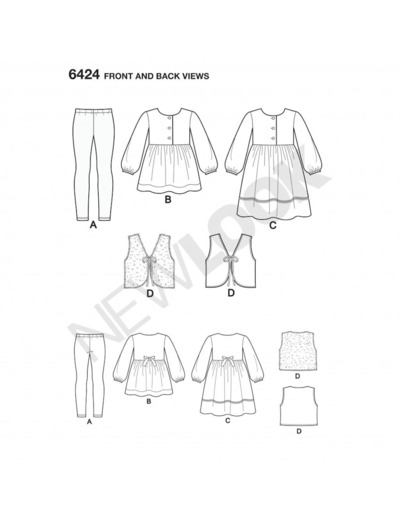 Patron de tunique, robe, legging et gilet pour filles de 3-8 ans.