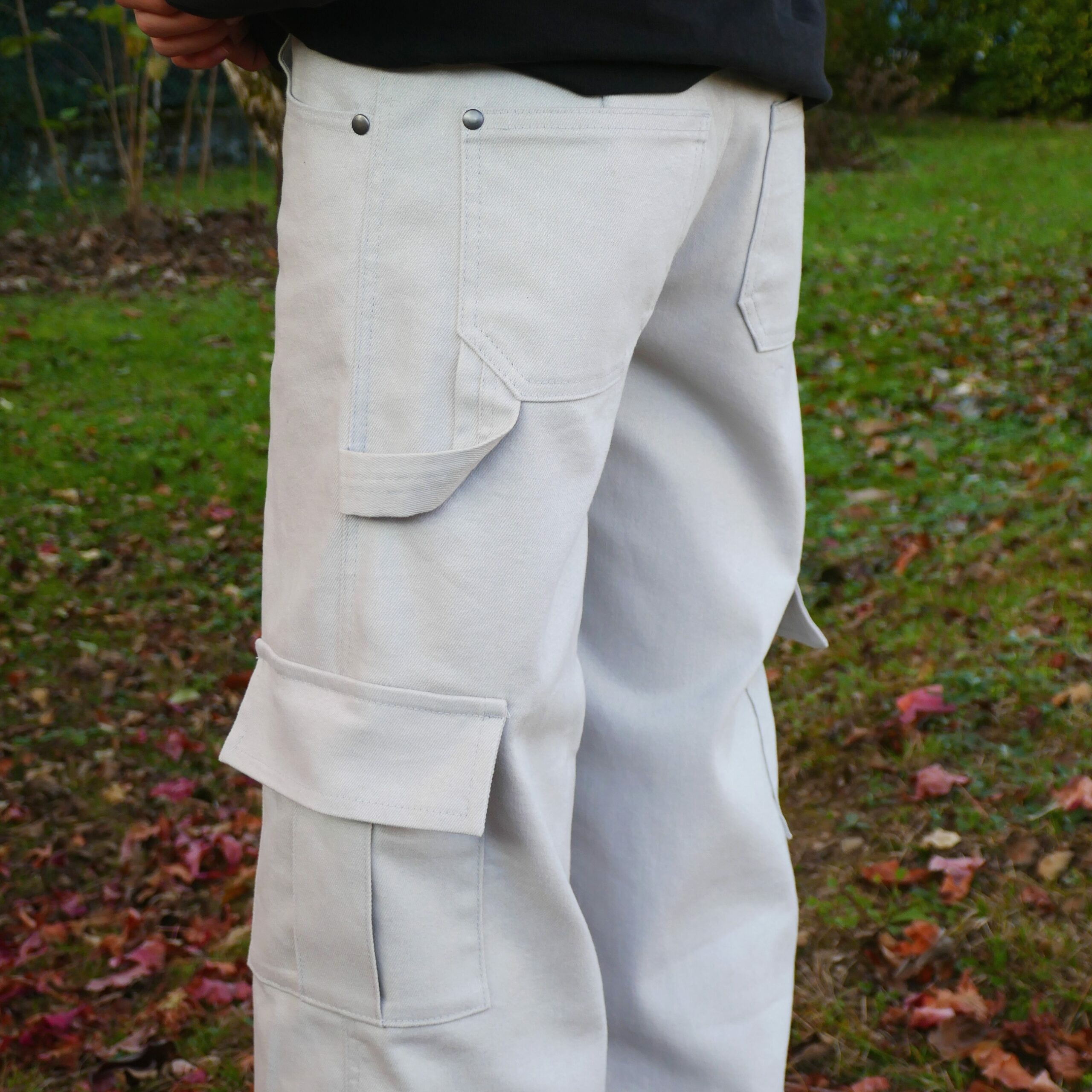 Le patron Buffalo est un modèle polyvalent permettant de coudre un jean, un bermuda ou un pantalon cargo pour garçon, décliné du 2 au 16 ans.