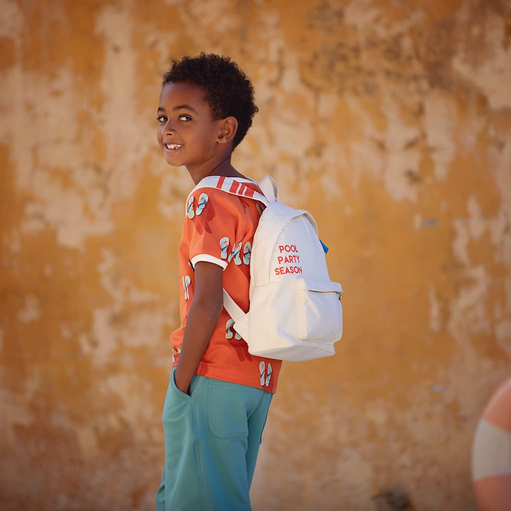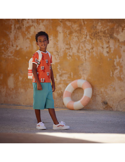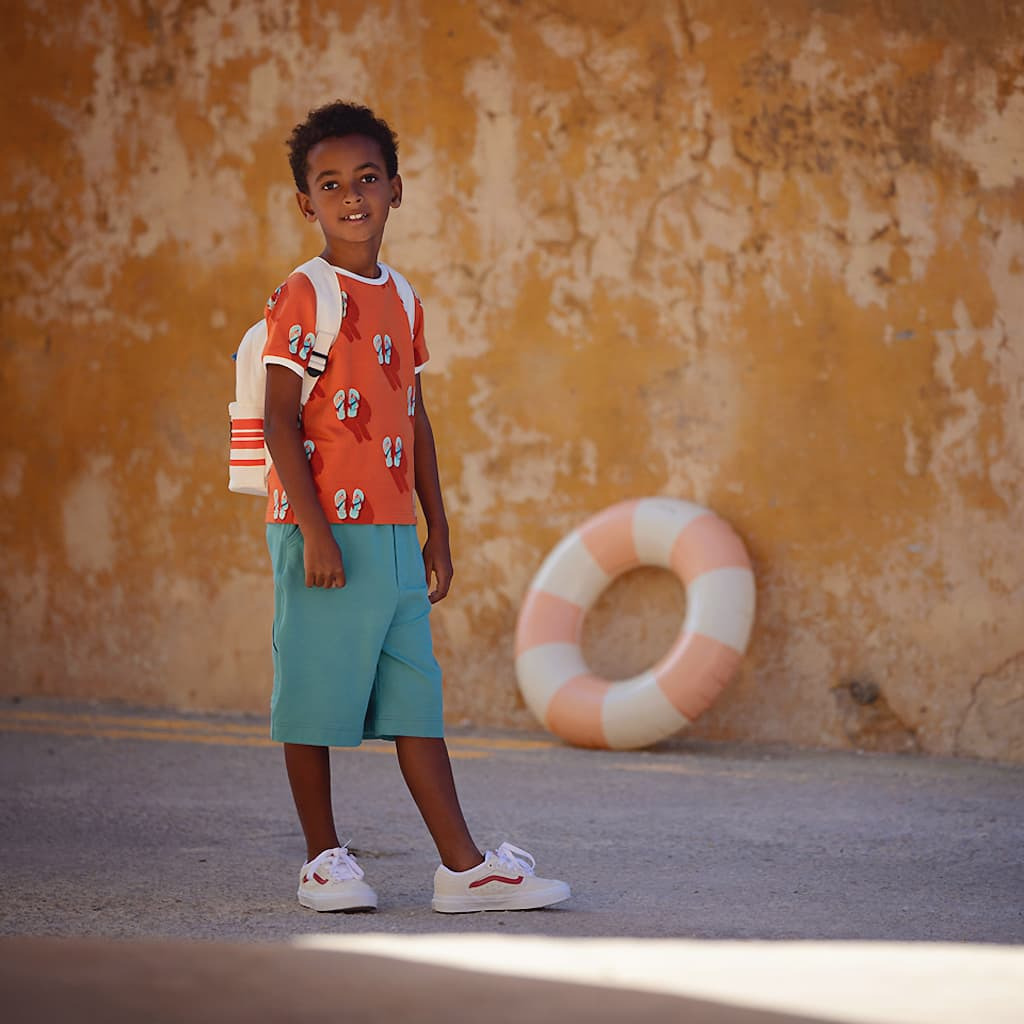 See You At Six - Tissu French Terry De Coton Imprimé "Flip Flops" Sur Le Fond Rouge Puffin Bill
