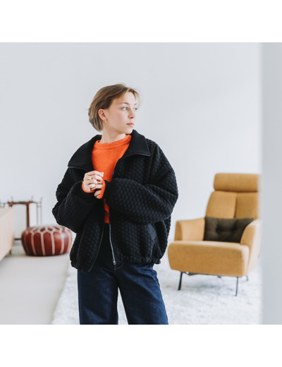 Ce tissu tricoté présente une belle texture piqué et un effet matelassé rembourré, parfait pour confectionner des vestes, sweats ou pulls élégants et confortables. Grâce à sa finition de qualité et à son tombé structuré, il allie style et chaleur.