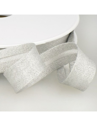 Biais tous textiles lamé argenté pré-plié 20 mm.