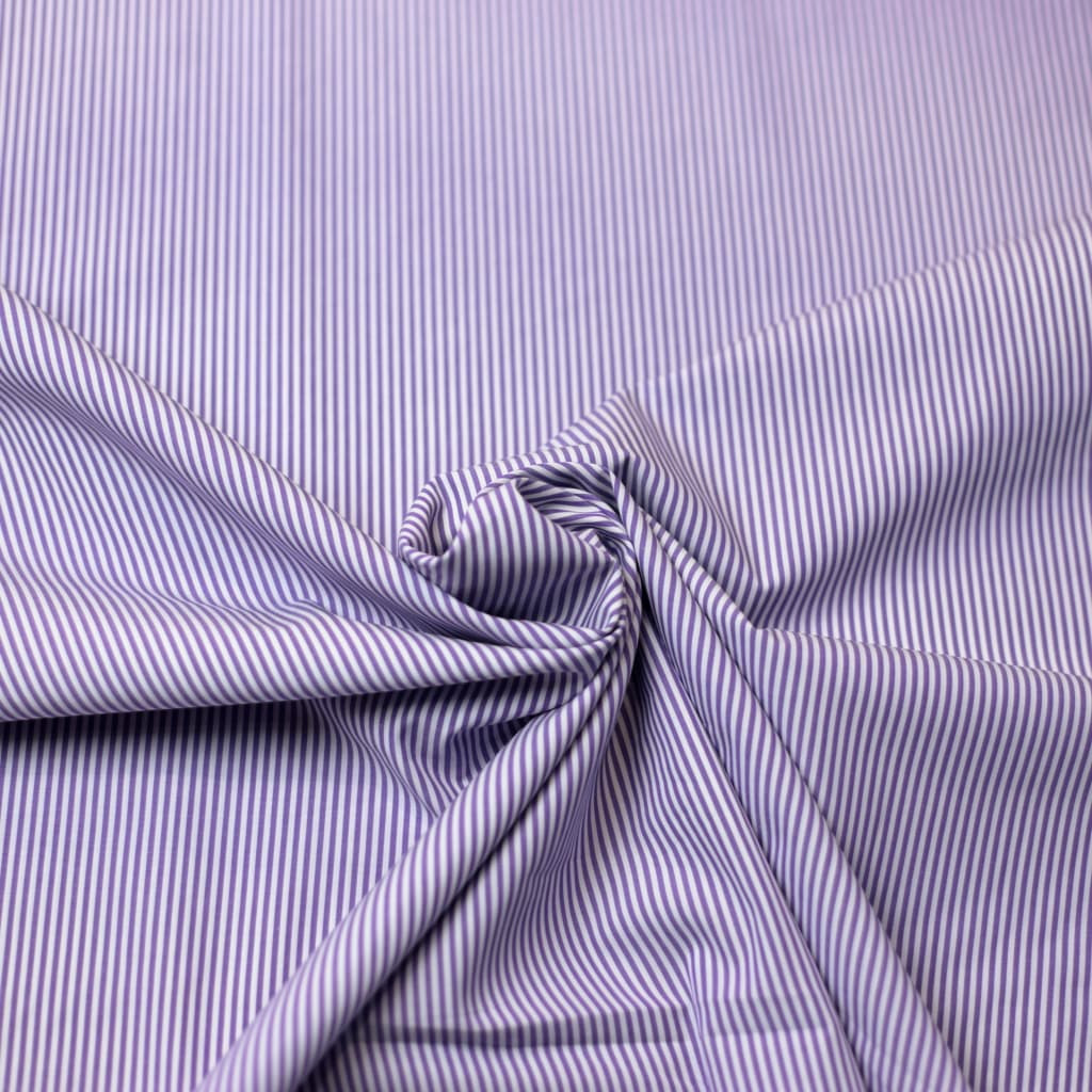 Apportez élégance et raffinement à vos créations avec ce coton de chemise fil à fil à rayures fines violettes et blanches. Léger, respirant et agréable au toucher, ce tissu est idéal pour la confection de chemises, blouses, robes ou encore accessoires raffinés.