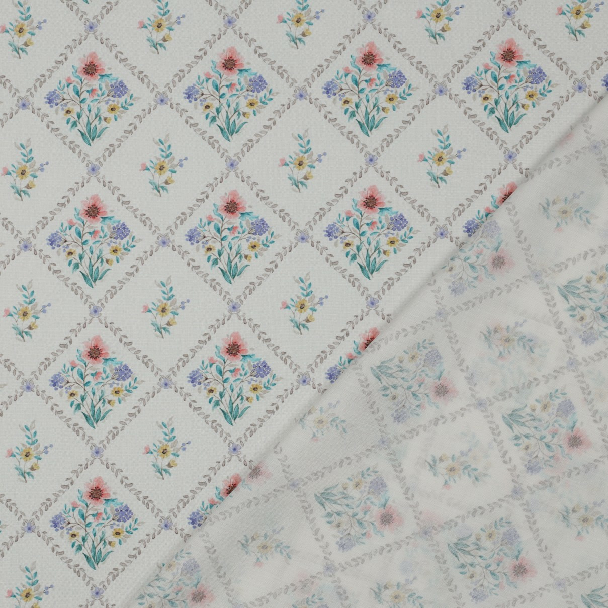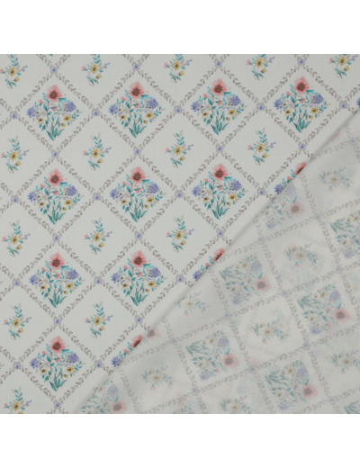Cette popeline de coton fleurs vintage séduit par son élégant motif floral disposé en losanges, dans de délicates teintes de rose, bleu, vert et jaune, sur un fond blanc cassé lumineux. Son style intemporel apporte une touche romantique et raffinée à toutes vos créations.