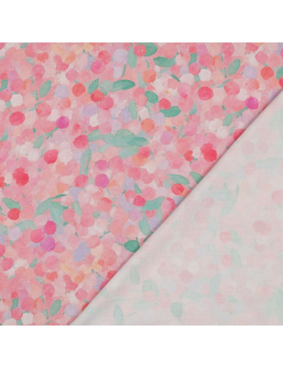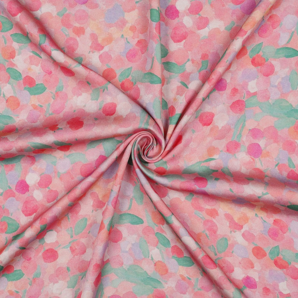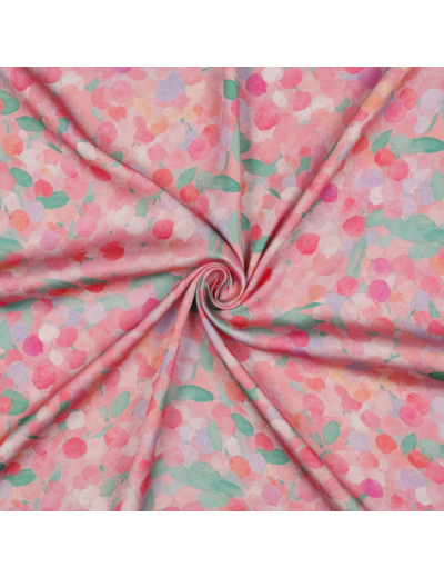 Laissez-vous séduire par la délicatesse de notre satin de viscose Aquarelle Florale, un tissu fluide et lumineux qui évoque un jardin en pleine floraison. Son imprimé subtil mêle des nuances de rose, corail, lilas et vert tendre dans un effet aquarelle doux et romantique. Parfait pour des créations féminines, poétiques et estivales.