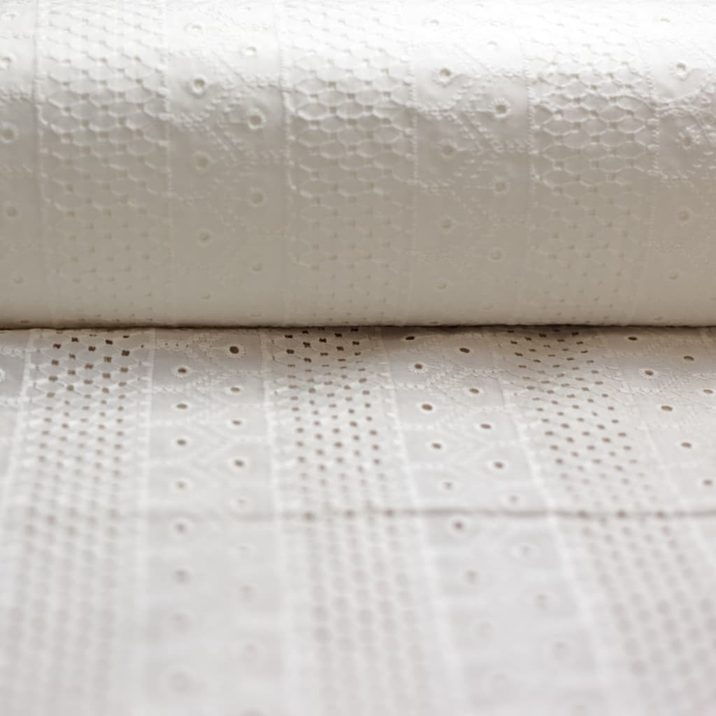 Ce tissu broderie anglaise sera idéal pour la robe de première communion, la robe de bâpteme ou toute autre occasion spéciale.