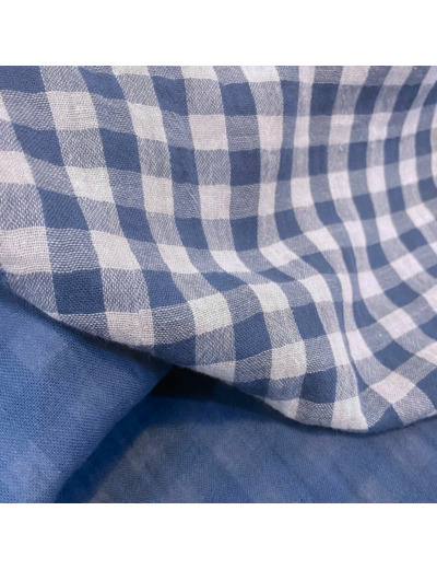 Sélection Coup de coudre - Tissu Double Gaze Vichy Double Face Couleur Bleu Denim